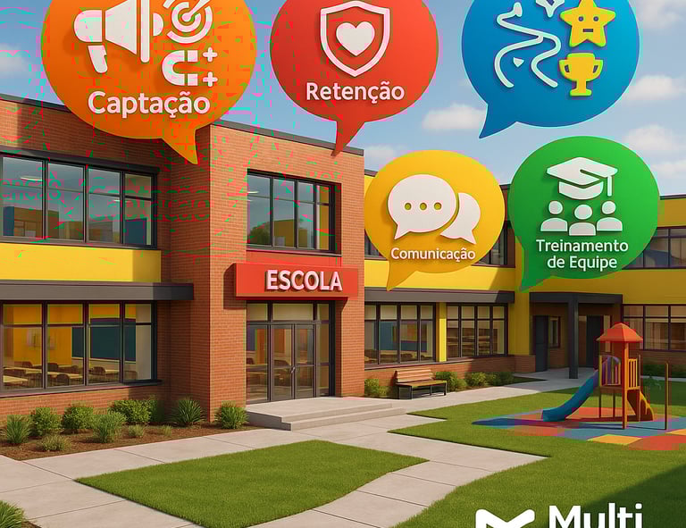 Eles resolvem os gargalos que mais travam o dia a dia das escolas privadas: captação, retenção, comunicação, treinamento de equipe e experiência do aluno. Conteúdo prático, aplicável em 24h, com checklists, scripts e modelos prontos.